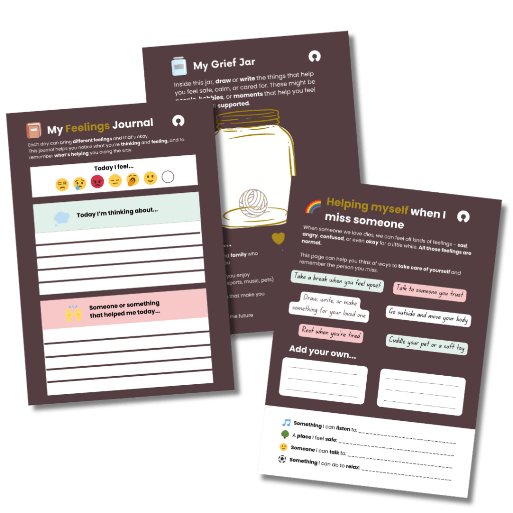 That’s why we’ve created a new series of child grief worksheets, designed by Clinical Psychologists to help children and young people express feelings, process memories, and find moments of calm and connection after loss.