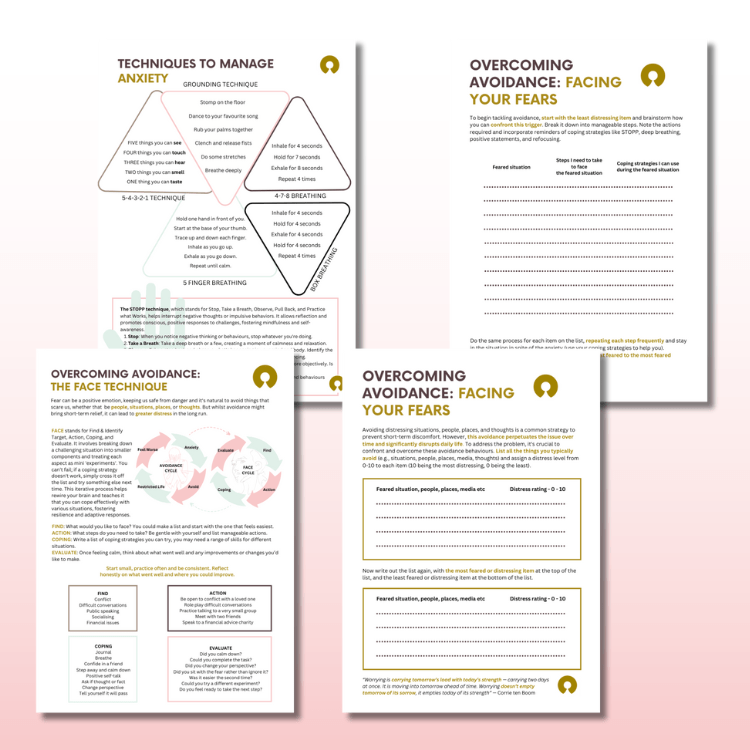 - Overcoming Avoidance: Strategies and exercises to confront and overcome avoidance behaviours exacerbating anxiety.