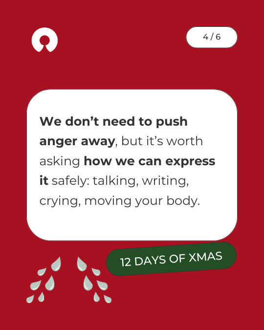 Often, anger sits on top of sadness – because sadness can feel more vulnerable and harder to sit with. We donβt need to push anger away, but it can help to find safe ways to express it: talking, writing, crying, or moving your body. Every feeling in grief needs space – even anger. Try noticing it without judgement, and remember to breathe through it.